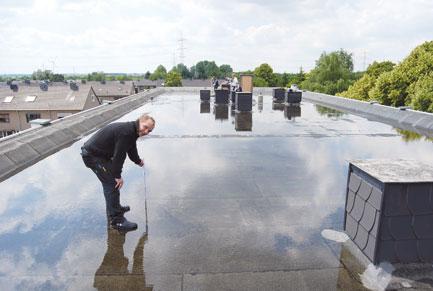 Na dach płaski z blachy trapezowej są przeznaczone płyty MONROCK MAX E lub HARDROCK MAX z wełny skalnej ROCKWOOL. Układa się je luzem jako . A - jest to montaż typu niskiego. Do blachy trapezowej przykręcana jest za pomocą wkrętów farmerskich poprzecznie specjalna płaska szyna montażowa, do której . Musi być ono przede wszystkim dokładnie szczelne. Inne pokrycie sprawdzi się na dachu płaskim , a inne na skośnym.
