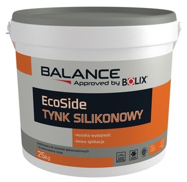 BOLIX na płytach styropianowych EPS oraz płytach z wełny . BOLIX SIT-P – tynk silikonowy z efektem perlenia. Produkt dostępny w kolorach Palety Barw Spoin BOLIX. Opakowania: 25kg. Bolix EcoSide tynk silikonowy BIAŁY.